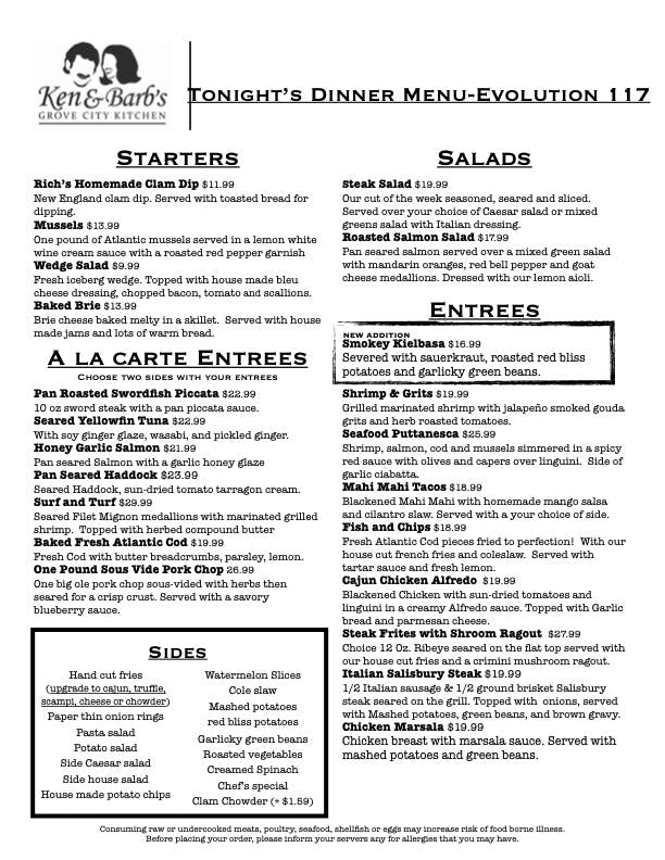 Menus Ken And Barbs Grove City Kitchen In Englewood Fl